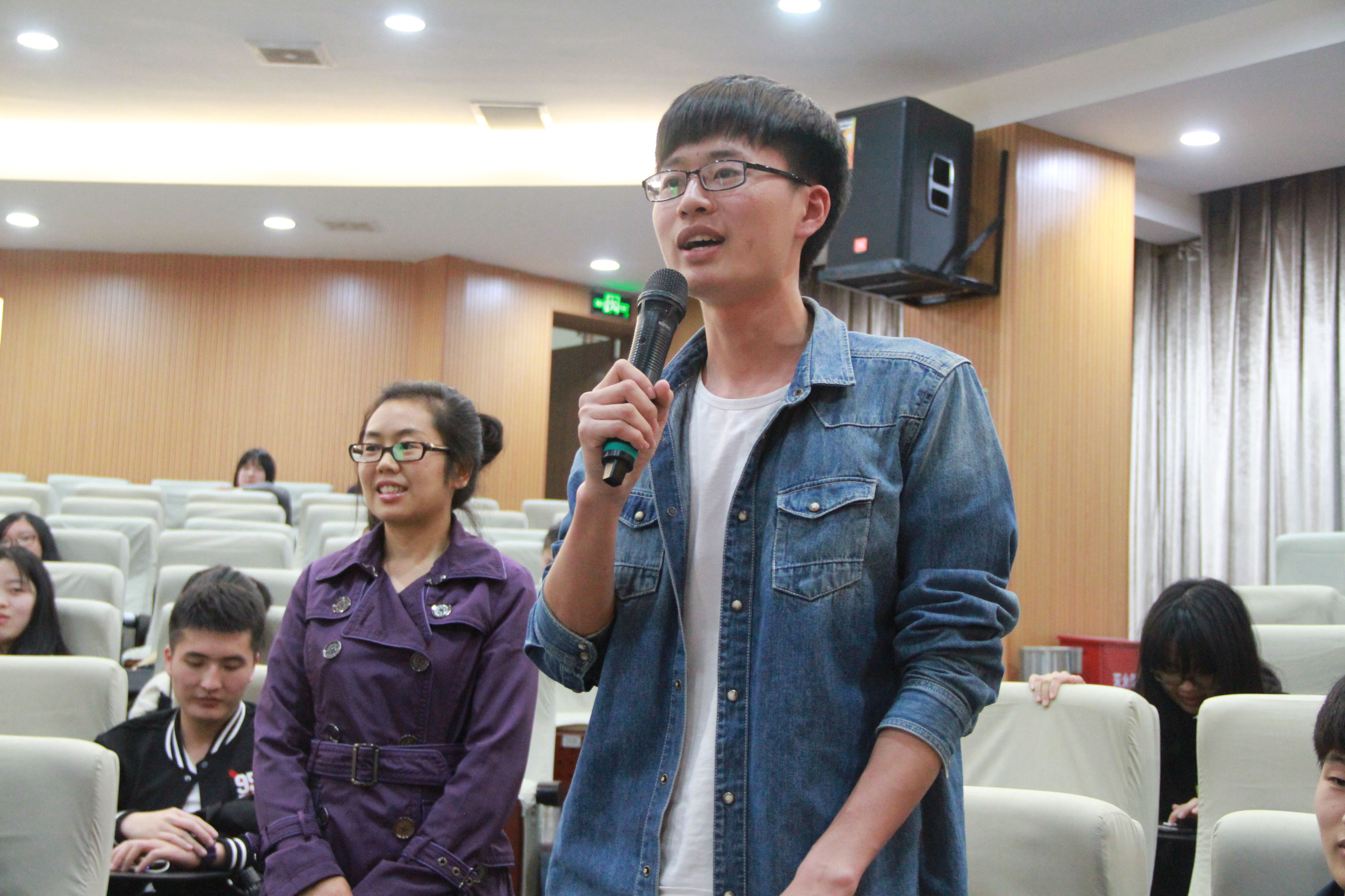 在现场提问环节中,同学们踊跃提问。“大学生进入企业后,用人到单位更看重哪些方面呢?”李明德表示,私企注重大学生对公司、工作的态度。谢志盛则认为,在国企注重专业知识能力以及获取的证书。校友们的回答解决了同学们间疑惑,增进同学们对未来发展道路的了解。