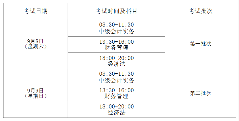 中级资格定于2018年9月9-10日举行,各科目具体考试时间及批次如下: