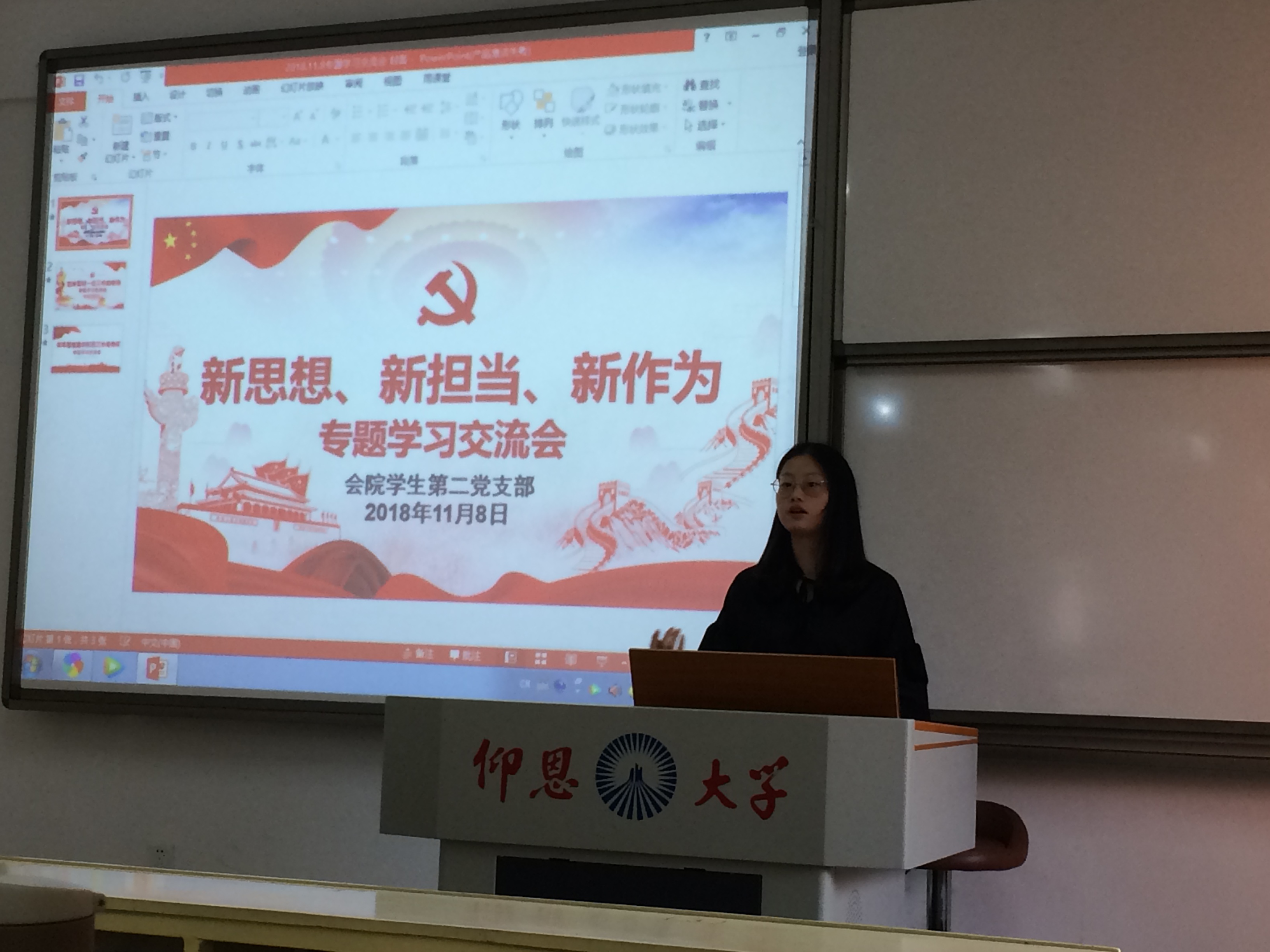 WilliamHill官方网站学生第二党支部于2018年11月8日16:00在第一教学区吉龙楼304开展了“新时代、新思想、新担当、新作为”专题学习交流会,在学习交流会上,党员同志们积极进行学习交流与分享。