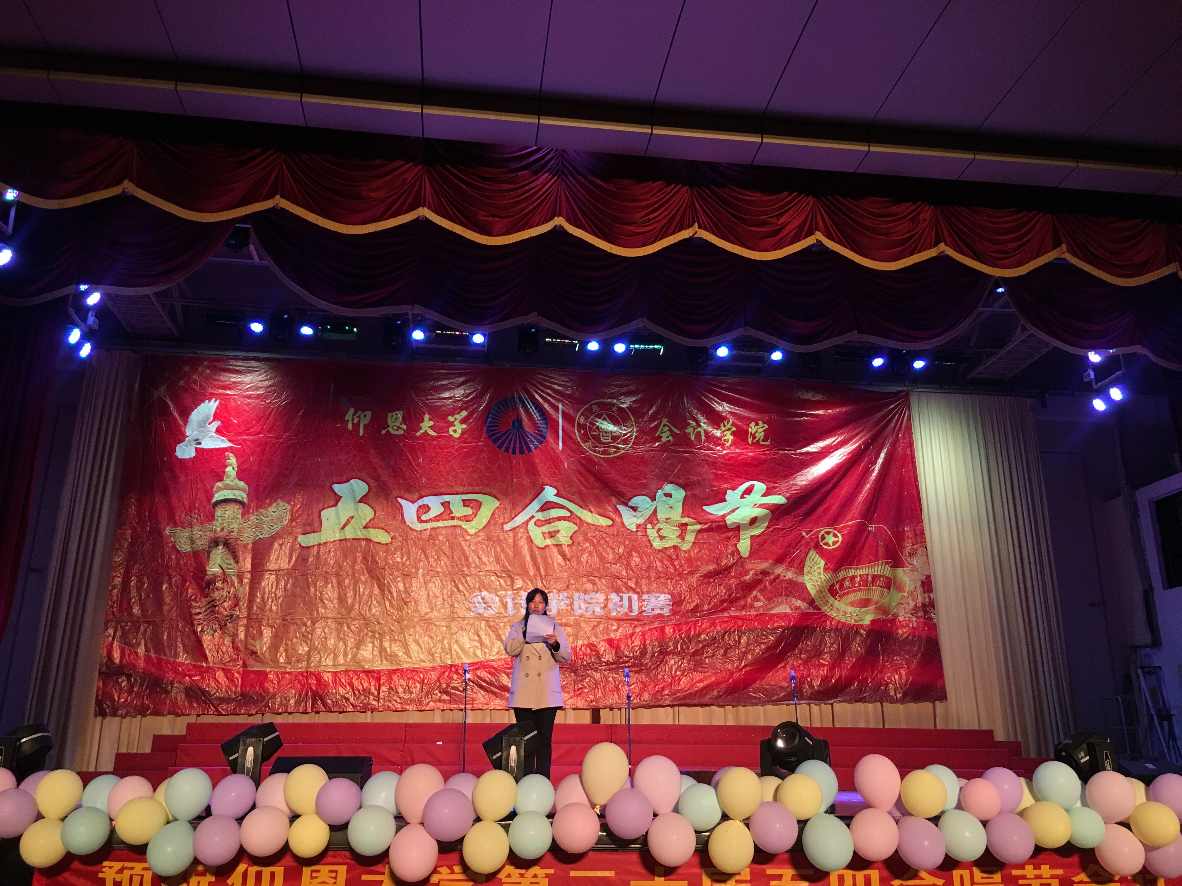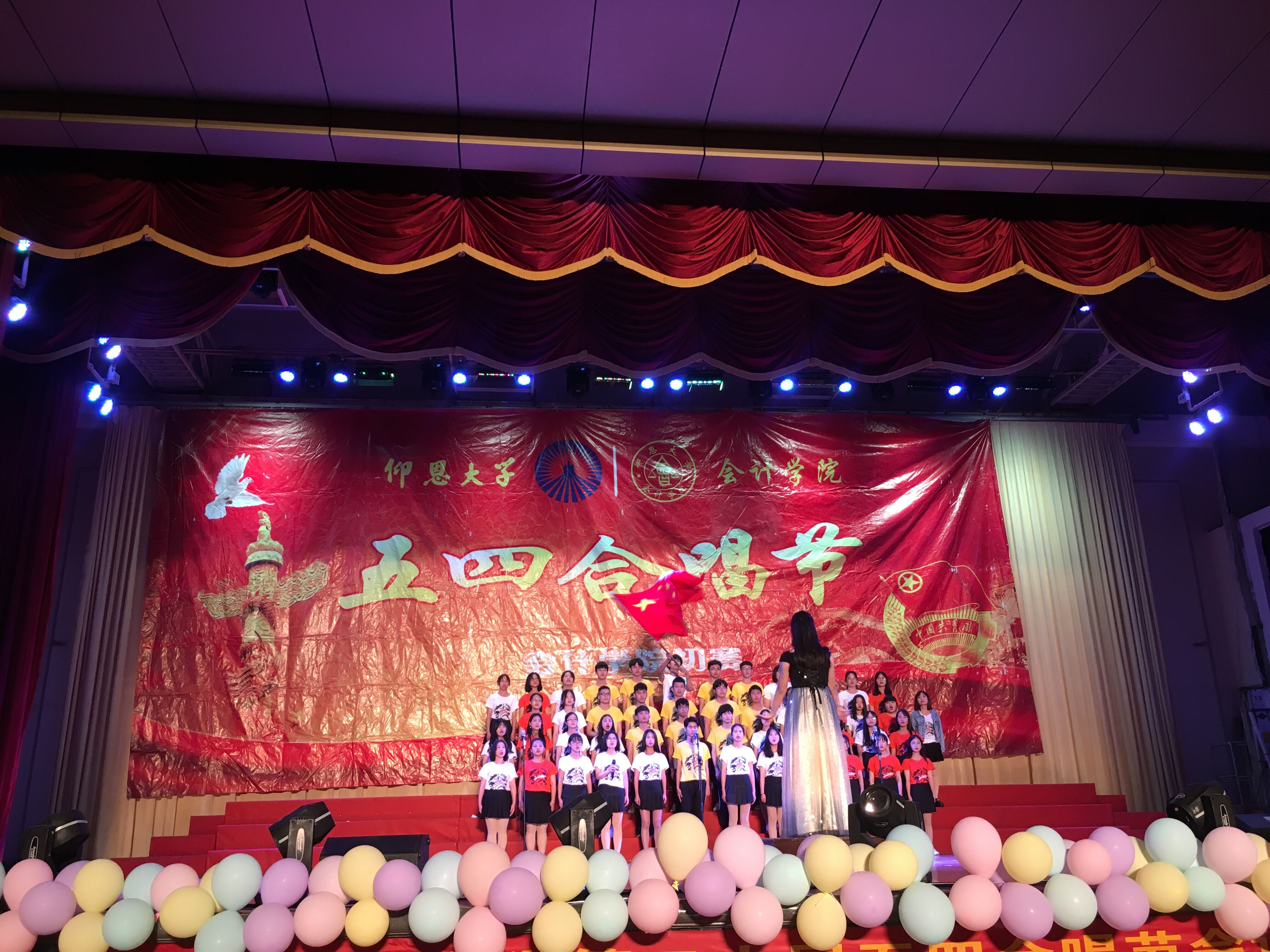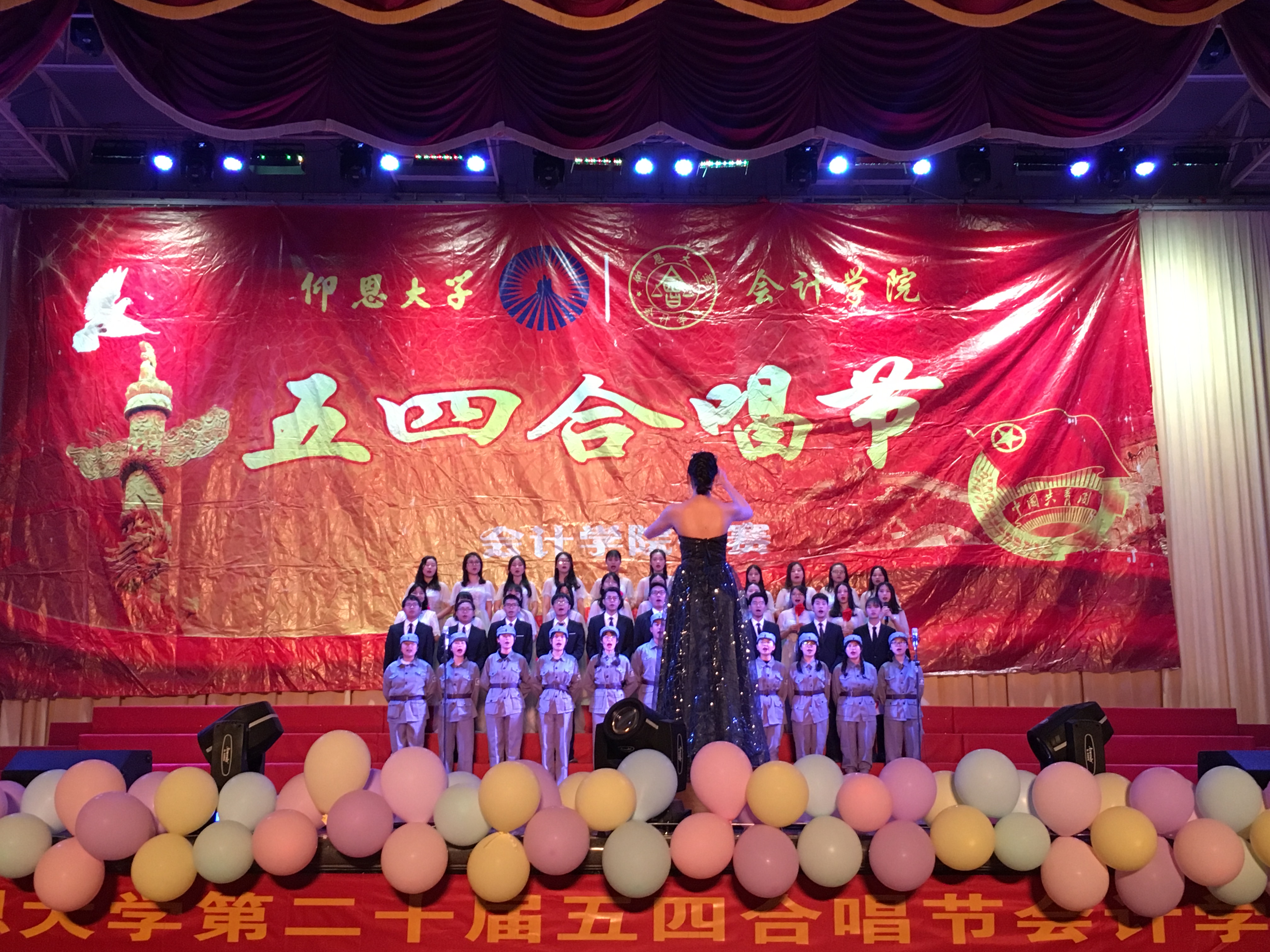 以一支活力动感的舞蹈开场后,院长何杨英老师的一番激励人心的开场陈词拉开了本次比赛的序幕。参加比赛的12个班级尽显歌喉,振奋人心的《旗开得胜》、浓浓爱国情的《歌唱祖国》、书法与歌曲并柔的《喀秋莎》、特色仰恩版《成都》等歌曲无一不唱响着中国梦。嘹亮的歌声,青春的洋溢体现着积极向上、追求理想的态度,更为祖国建国七十周年而欢庆。最终,16会计1班以歌曲《串烧:歌唱祖国+怀念青春+再见》荣获一等奖及最佳精神风貌奖,洋洋盈耳,博得观众们的阵阵喝彩。