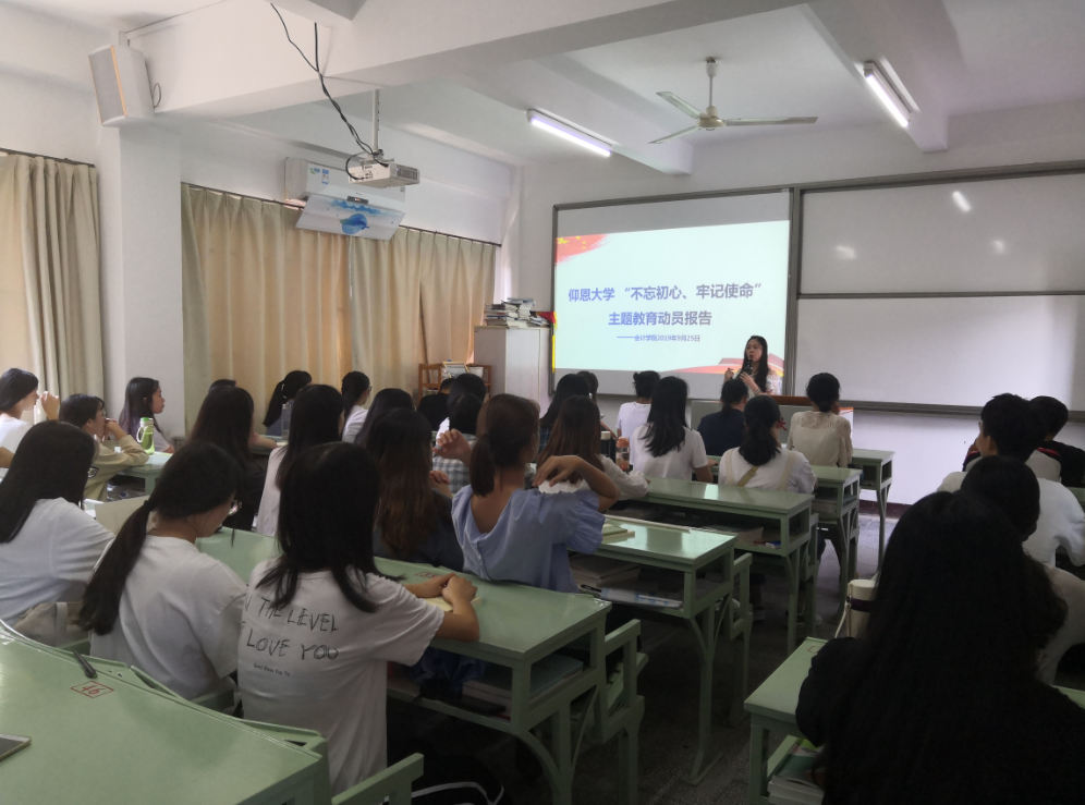 9月25日下午,WilliamHill官方网站党总支在吉龙楼108教室开展“不忘初心、牢记使命”主题教育动员部署会,深入贯彻落实习近平总书记在“不忘初心、牢记使命”主题教育工作会议上的重要讲话精神,对主题教育进行动员与重点部署,全院教师党员、学生党员参加会议。