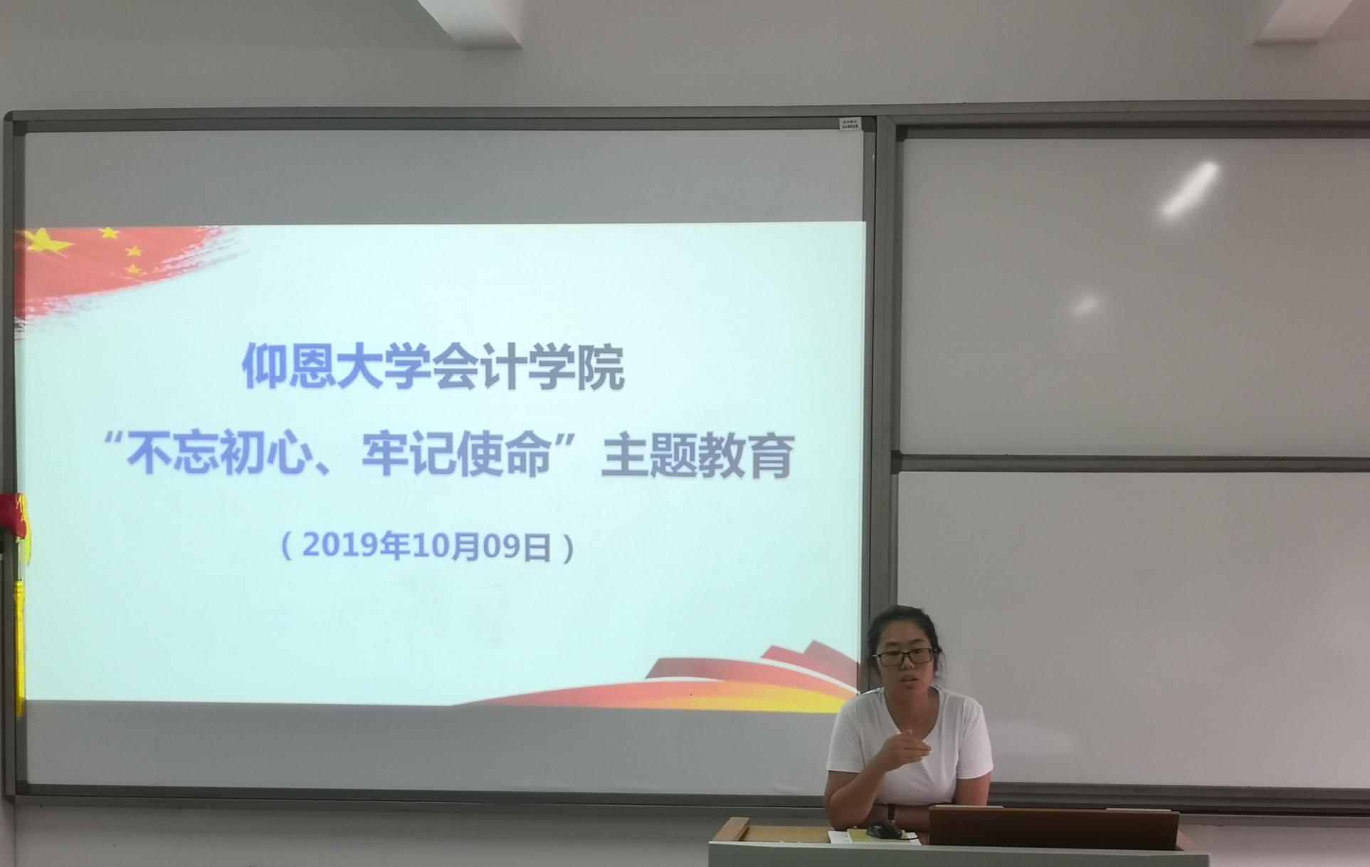 面对以上这些情况,她还提到大家应该要坚定人生信念,树立崇高理想。一是做到必须强化理想信念“三种精神”,即理想信念的“纪律精神”、“服务精神”、“模范精神”,做到“真严真查真问责,真学真改真落实”,坚持全心全意为人民服务,起到模范带头的作用。二是“践行理想信念的四个加强”,即加强自我教育,加强理论武装,加强实践实训,加强道德修养,做到把思想政治教育的目标和要求变成年轻党员的自我探索,自我获得的一种内在的自主性探索的需要。并且她还强调,党员定要永远铭记入党誓词,做到“不忘初心、牢记使命”。