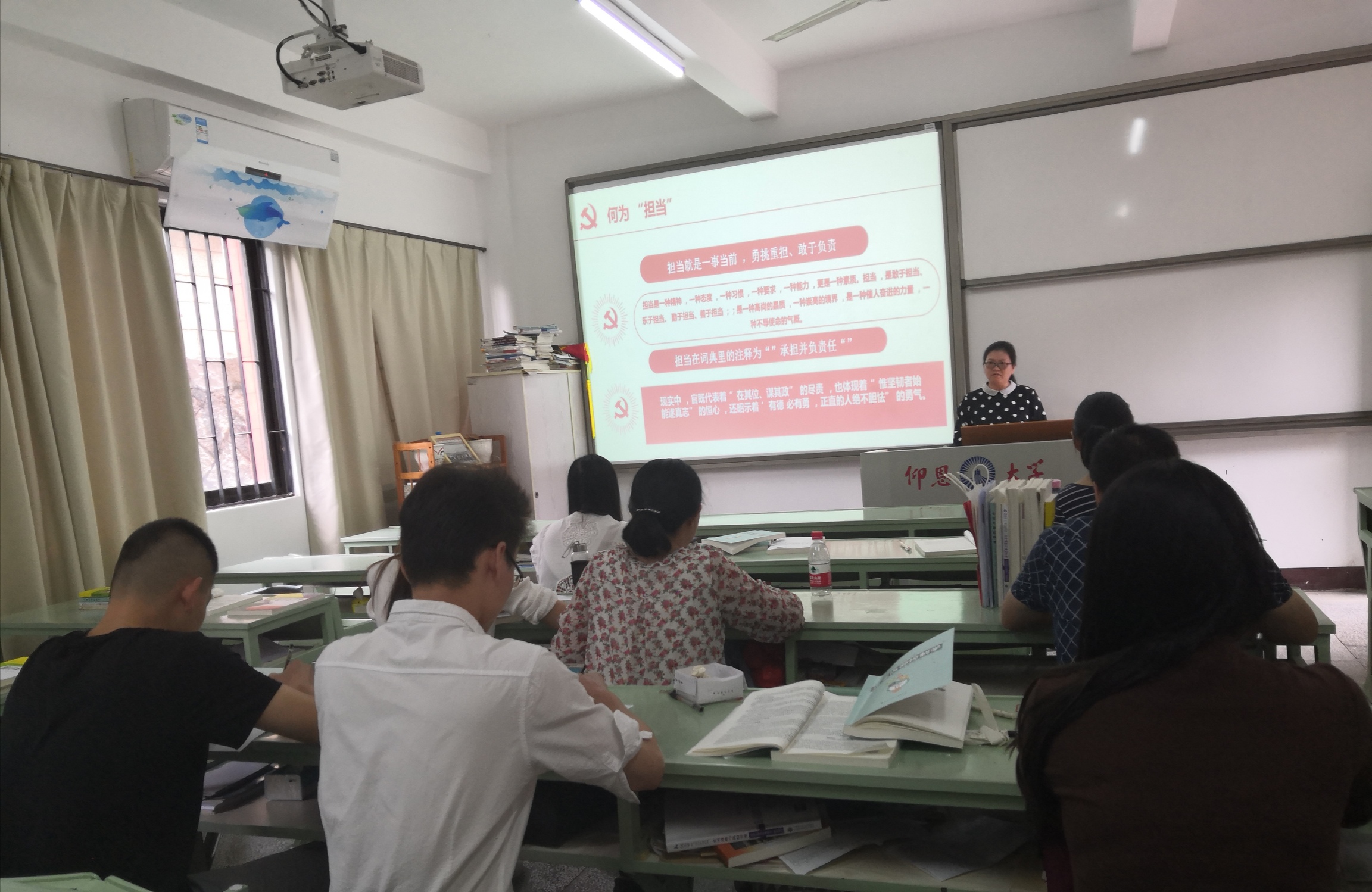 2019年10月23日下午2:30,WilliamHill官方网站党总支在吉龙楼106教室召开“不忘初心、牢记使命”主题教育专题五“主动担当作为”学习研讨会,学院全体教师党员、学生党员代表参加会议。