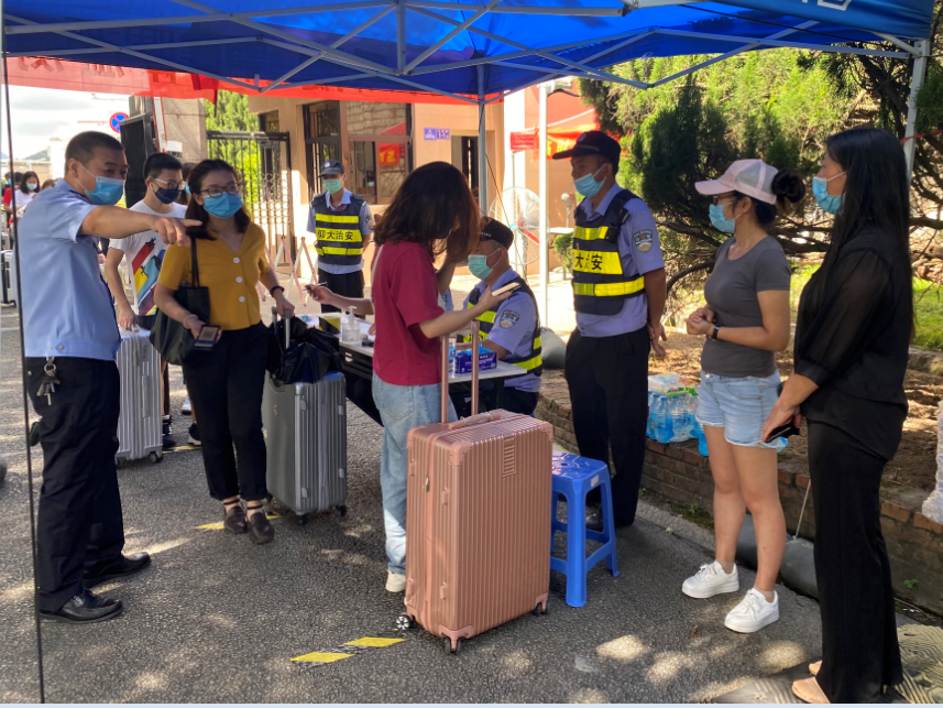 在仰恩大学第一教学区学生报到处,保卫处工作人员逐一核验学生身份证、学生证、健康码,测量体温正常后方可入校。学院领导与返校毕业生亲切交流,关心了解他们的健康情况及就业情况,叮嘱他们返校后要严格遵守学校疫情防控的要求,在做好自身防护的前提下,有序办理毕业生离校手续,并祝愿大家前程似锦。