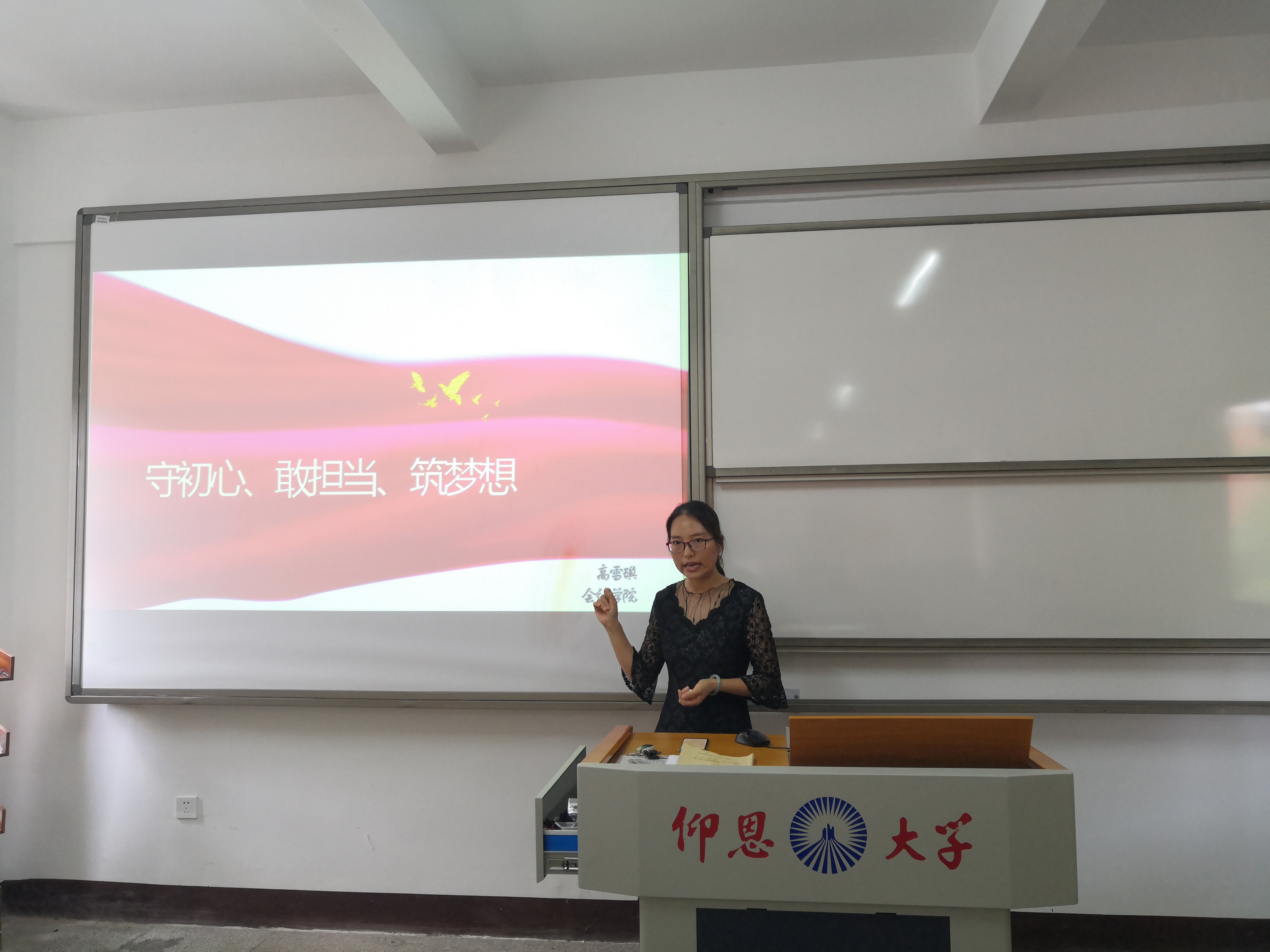 WilliamHill官方网站党总支书记高雪琪以“守初心、敢担当、筑梦想”为主题为毕业生党员上了一堂生动而深刻的党课。她从习近平总书记的初心和梦想、习近平新时代中国特色社会主义以及新时代大学生的历史使命与责任担当三个方面将党的嘱托、人生经历与心得体悟向同学们娓娓道来,引导毕业生党员同志不忘当年入党的初心,牢记党“为中国人民谋幸福、为中华民族谋复兴”的使命,始终把祖国和人民的需要作为自身择业和努力的方向,将“我的梦与中国梦”相结合,始终与祖国和人民“共命运、同成长”,力争在接下来的工作岗位中脚踏实地、做出实实在在的成绩,鼓励大家要不忘初心、坚守信仰、情系祖国、放飞梦想。无论大家走到哪里,都希望他们能回首来时路,坚定自信,不忘初心。
