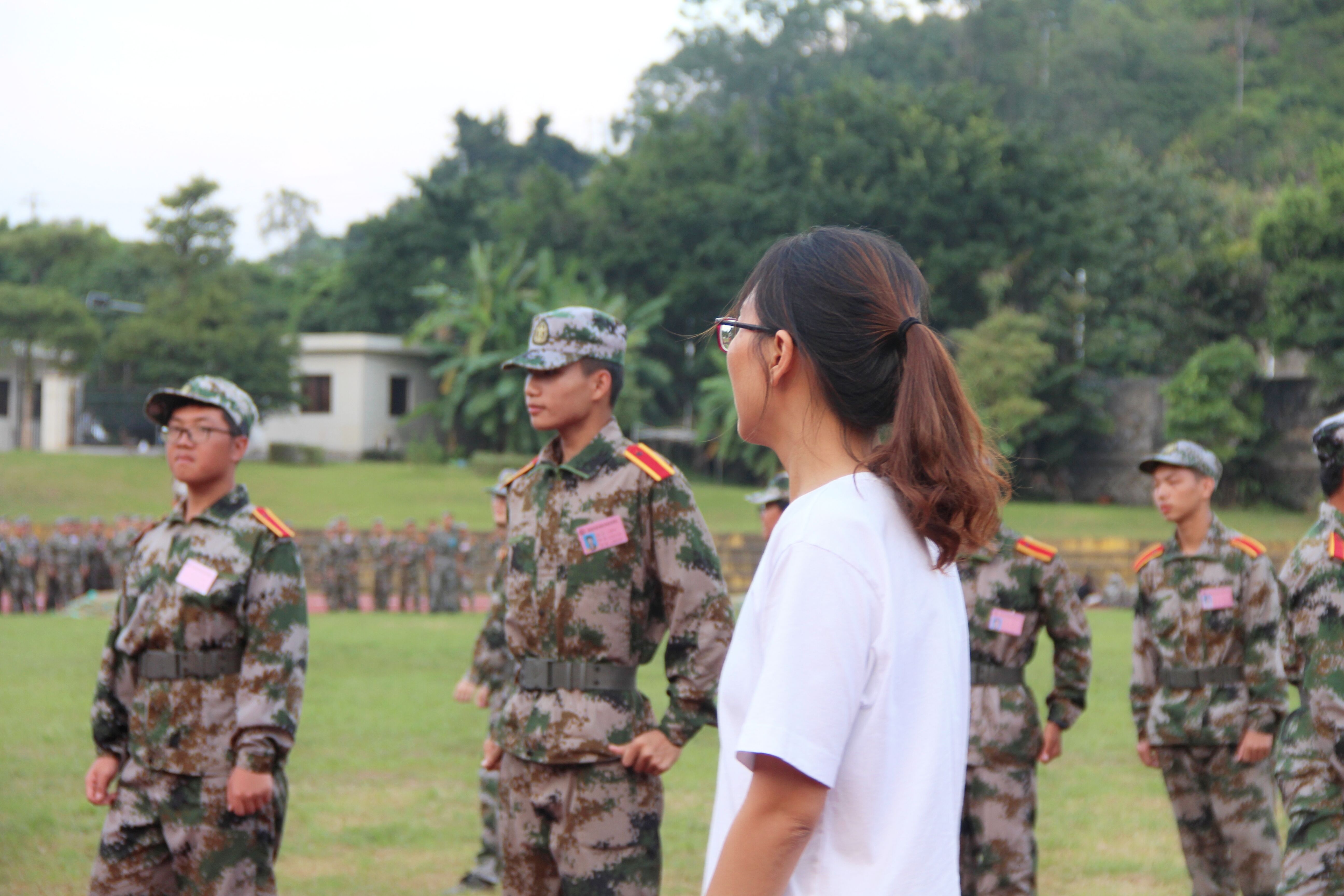 高雪琪来到新生中间,向正在辛苦训练的学生们表达了亲切的慰问,并鼓励同学们努力拼搏、培养吃苦耐劳的精神。希望同学们不畏艰辛、砥砺前行,努力圆满完成军训任务,并将军训中培养出的优良品质延续到今后四年的大学生活中。