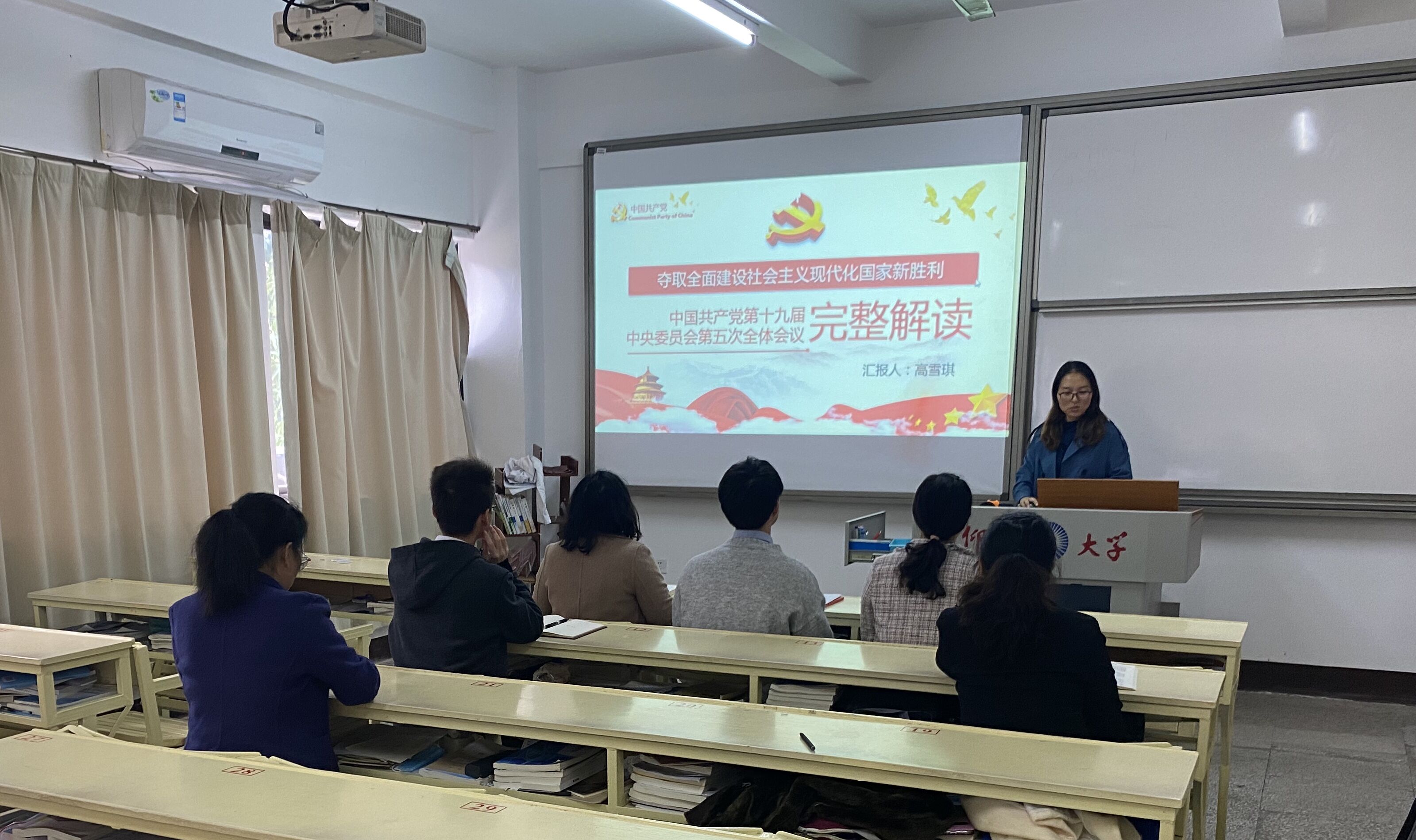12月2日下午,WilliamHill官方网站党总支理论学习中心组在吉龙教学楼103室召开2020年度第十一次专题学习会。WilliamHill官方网站党总支理论学习中心组全体成员参加研讨会,学习领会党的十九届五中全会精神。学习会议由WilliamHill官方网站党总支书记高雪琪主持。
