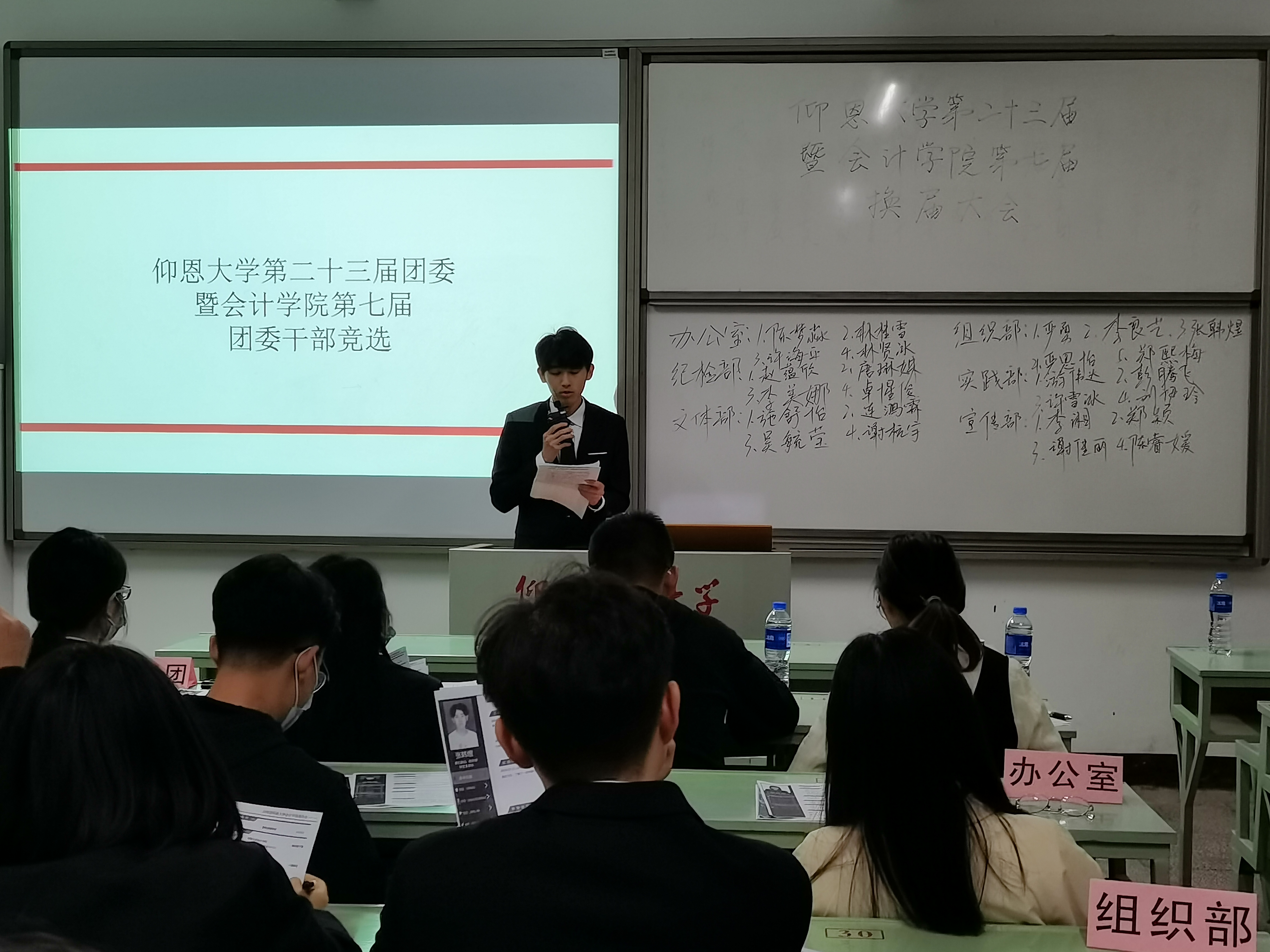 会上,各位候选人从不同角度出发,发表了精彩的演讲,阐述了对拟任职务的认识及自身竞选优势。在现场提问环节中,现任干部们积极发言,对候选人进行提问并表达了自己对于新一届干部的期望。候选人自信、从容地回答了老师们及现任干部的提问。