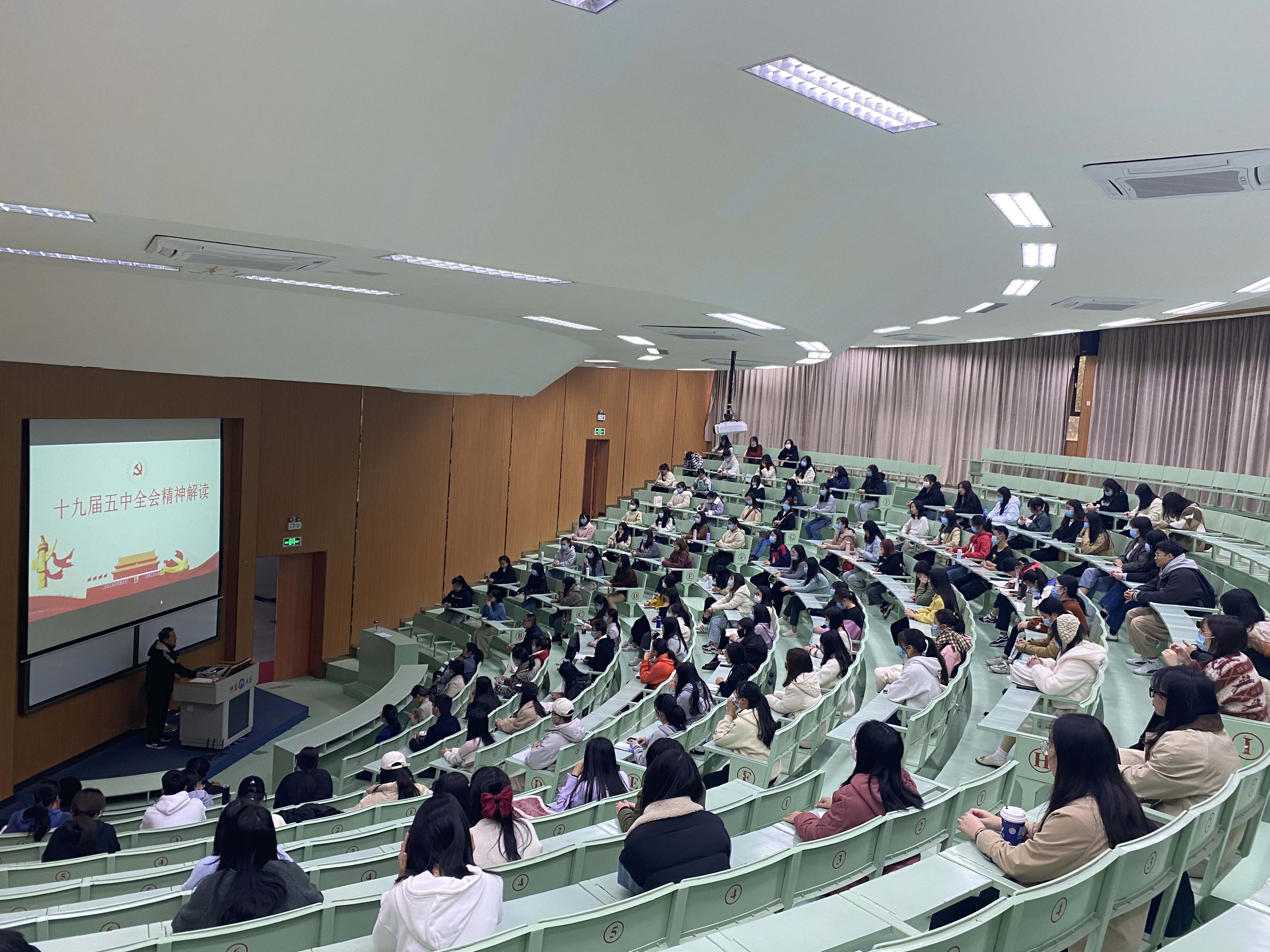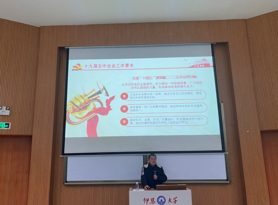 在宣讲中,李克钦用精辟的语言、结合生动的事例,从十九届五中全会的准备工作、十九届五中全会会议介绍、十九届五中全会指导思想、“十三五”以来取得的成就、我们面临的机遇与挑战、十九届五中全会总体目标、十九届五中全会工作要求等七个方面,作了一场精彩的宣讲报告。报告主题鲜明、内容丰富、思想深刻,对全院师生深入学习贯彻全会精神具有重要的指导作用。