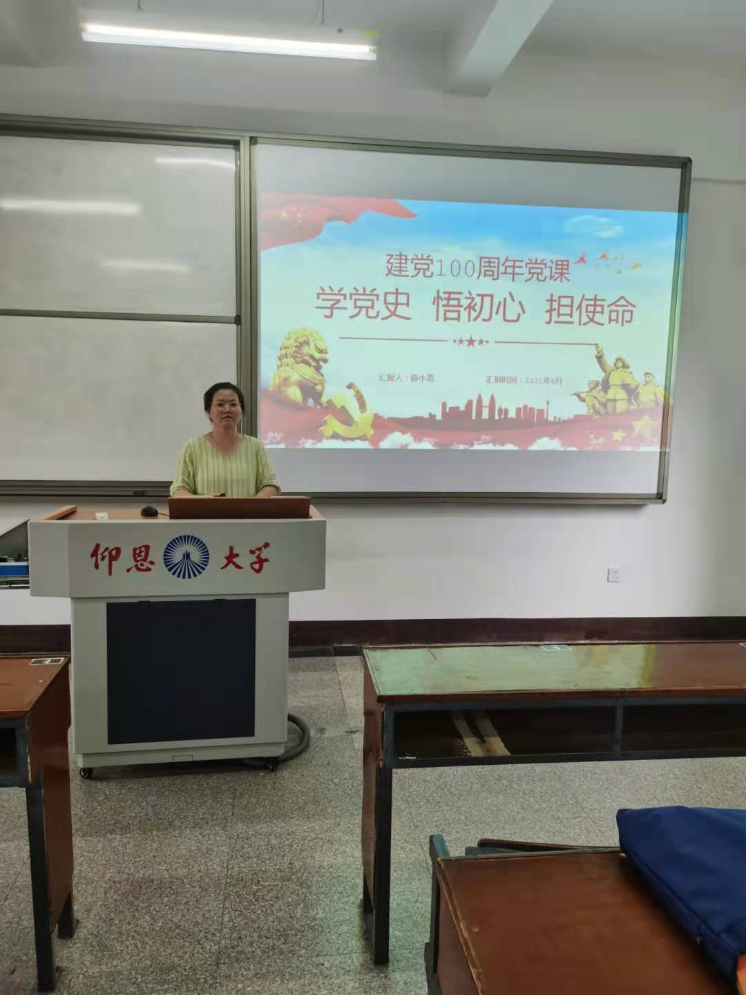 2021年6月28日下午4:00,WilliamHill官方网站教师党支部书记薛小青老师于共和楼203给支部党员讲以“学党史、悟初心、担使命”为主题的党课。支部党员教师和入党积极分子一起聆听了党课。