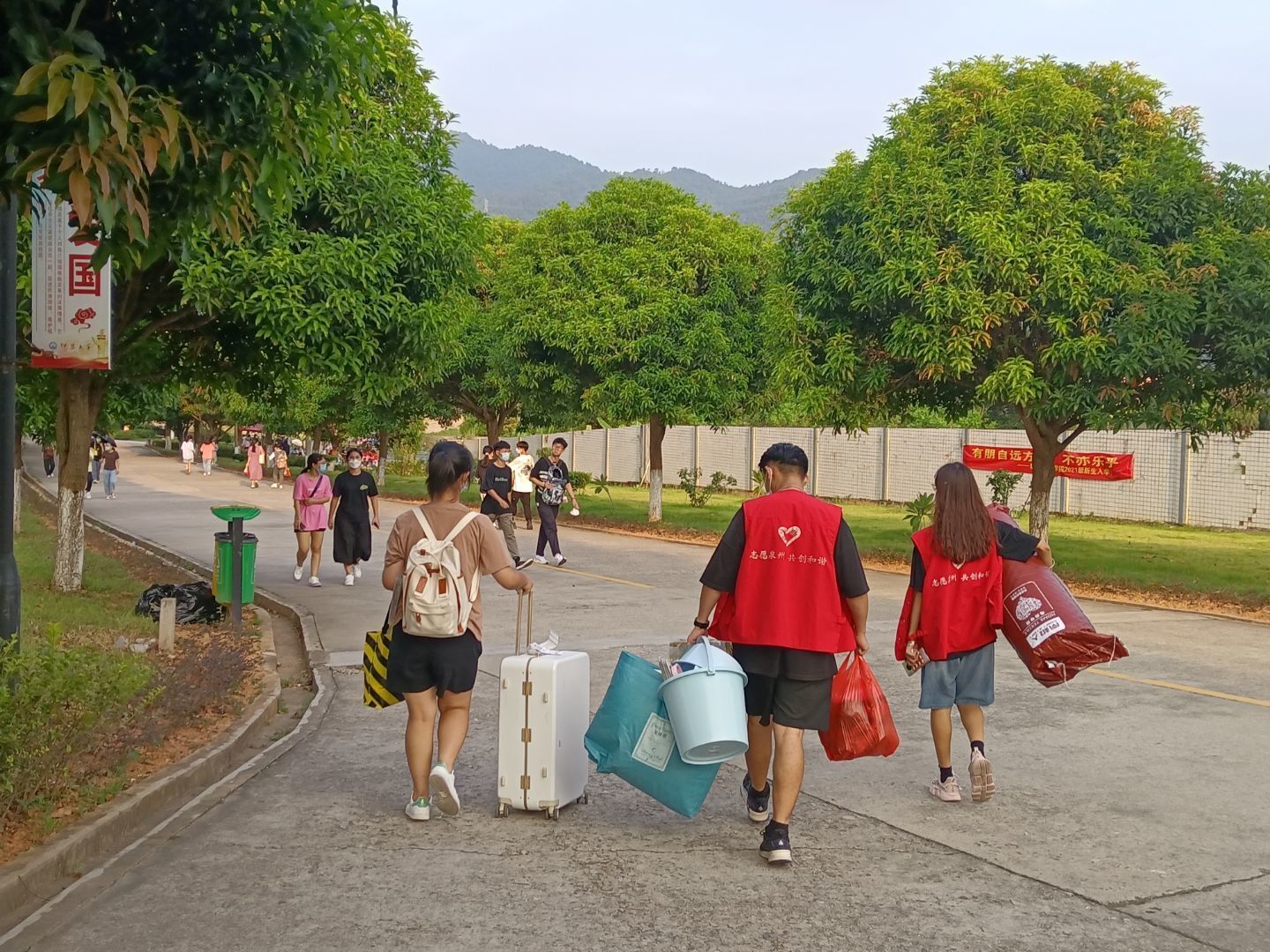 帮助新生搬运行李