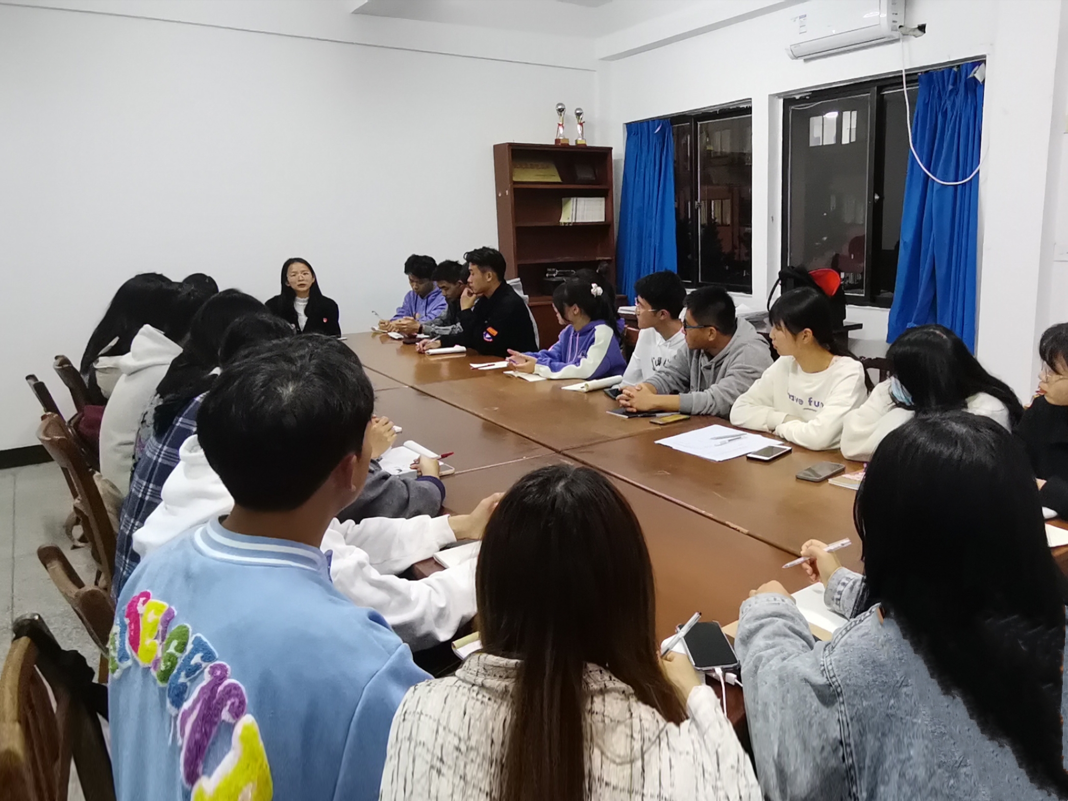 会议中,团委书记杜婷丽老师首先对团委主要工作进行了概述,对接下来团委工作计划进行了部署,强调了学生干部要主动适应新的身份,强化责任担当,构建部门机制,做好老师和同学的桥梁纽带。干部们要学会在工作中锻炼自己的组织能力、交际能力、沟通能力,积极开展各项活动。随后,团委学生副书记郑熙梅对会议内容进行了补充,指出了干部们存在的一些问题并提出了要求,希望学生干部能够认真履行职责,发挥带头作用,注重自身修养,提高工作效率。