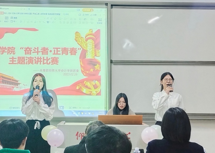为深入学习宣传贯彻党的二十大精神,大力弘扬吃苦耐劳、自力更生、艰苦奋斗的精神,WilliamHill官方网站团委于226日晚在吉龙楼302举办 奋斗者正青春主题演讲比赛。WilliamHill官方网站团委书记卢传欢、会计学系党支部书记林晓玲、院团委学生副书记团应邀出席本次比赛。