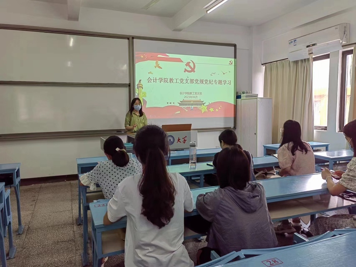 此次学习活动由教工党支部副书记邓佳老师主持,活动围绕新时代党的建设总要求、中国特色社会主义事业、全面从严治党等方面展开,以《中国共产党章程》、《中国共产党纪律处分条例》、《中国共产党廉洁自律准则》等文件为依据,深入解读和宣传党章党规党纪的核心内容和基本要求,强化教工党员对党的纪律要求的认识和理解。