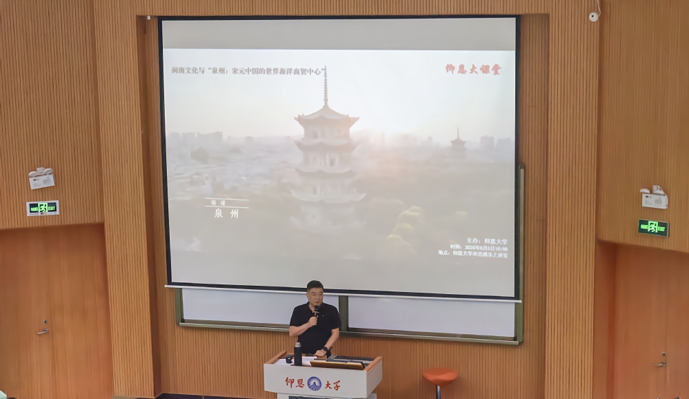 6月5日下午,我院于第一教学区和昌教学楼乐之讲堂举办第四十二期仰恩大讲堂。此次讲座主题为闽南文化与“泉州:宋元中国的世界海洋商贸中心”,由华侨大学马克思主义学院副院长骆文伟教授担任主讲,学院全体教师及部分学生到场聆听。