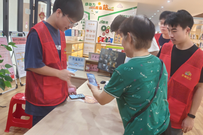 活动伊始,图书馆负责人向实践队员们详细介绍工作流程及注意事项。随后,实践队员迅速分组行动,分工明确、配合默契,高效有序地展开各项服务工作。在服务过程中,实践队员们认真整理书架,分类摆放图书,细致擦拭书架、桌椅,并清扫地面卫生,努力为读者营造整洁、舒适的阅读环境。同时,他们还积极为前来借阅图书和寻求帮助的居民提供咨询服务,耐心引导居民交流阅读心得,进一步激发了社区群众的阅读热情与兴趣。