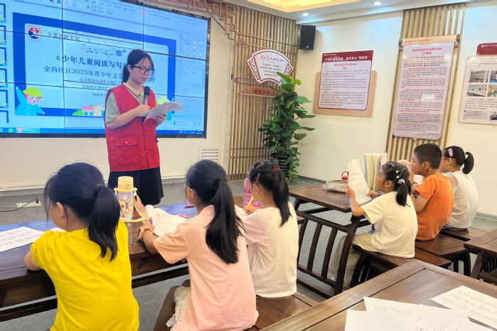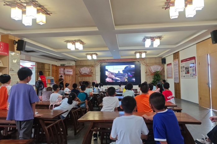 清晨,队员们带领孩子们进行晨读,经典篇章的诵读声唤醒清晨的活力晨练环节中,趣味跑等运动让孩子们在阳光下舒展身体,增强体质。活动期间,队员协助社区老师开展写作讲座,以生动案例激发孩子们的表达欲望增强孩子们的语言表达能力。同时,《飞屋环游记》观影活动,在影中向孩子们传递坚持与友爱的信念。