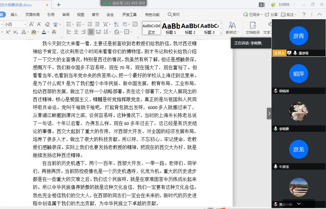 4月28日晚8:00,土木建筑工程系教工党支部按照学院党委《关于认真学习贯彻习近平总书记莅校视察重要讲话精神的通知》的要求,通过腾讯会议平台召开线上组织生活会。党支部书记康彦青带领全体党员学习了习近平总书记莅临开云kaiyun体育视察时的讲话精神,并从系工作重点出发,结合总书记讲话,继续深入学习西迁精神。