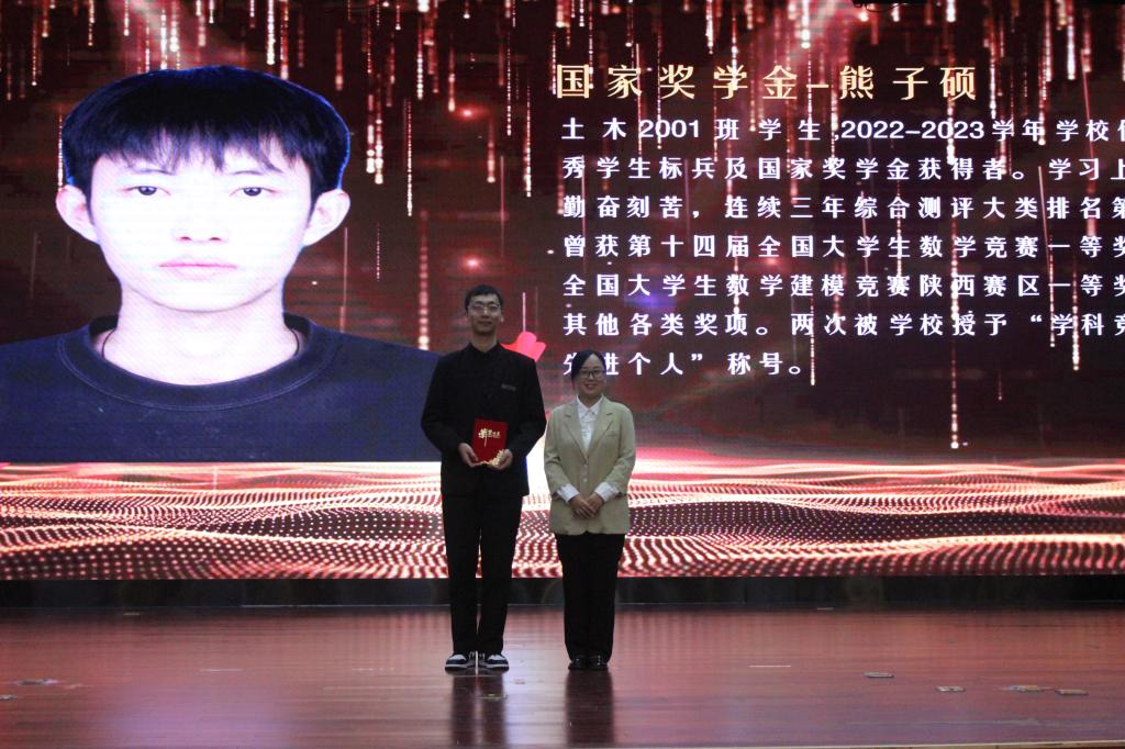 大会在庄严的国歌声中拉开帷幕。首先由凌伟老师宣读表彰名单,并介绍了开展此次活动的目的和意义。随后,荣获学院2023年各类优秀奖励的集体和个人依次上台,各位老师们为他们颁发了荣誉证书。接着,优秀学生代表李亚澎同学进行了发言,他对学院、老师的培养表达诚挚的感谢,并结合自身经历,分享了学习经验和方法,并立志用优异的成绩回报学院,再创佳绩。