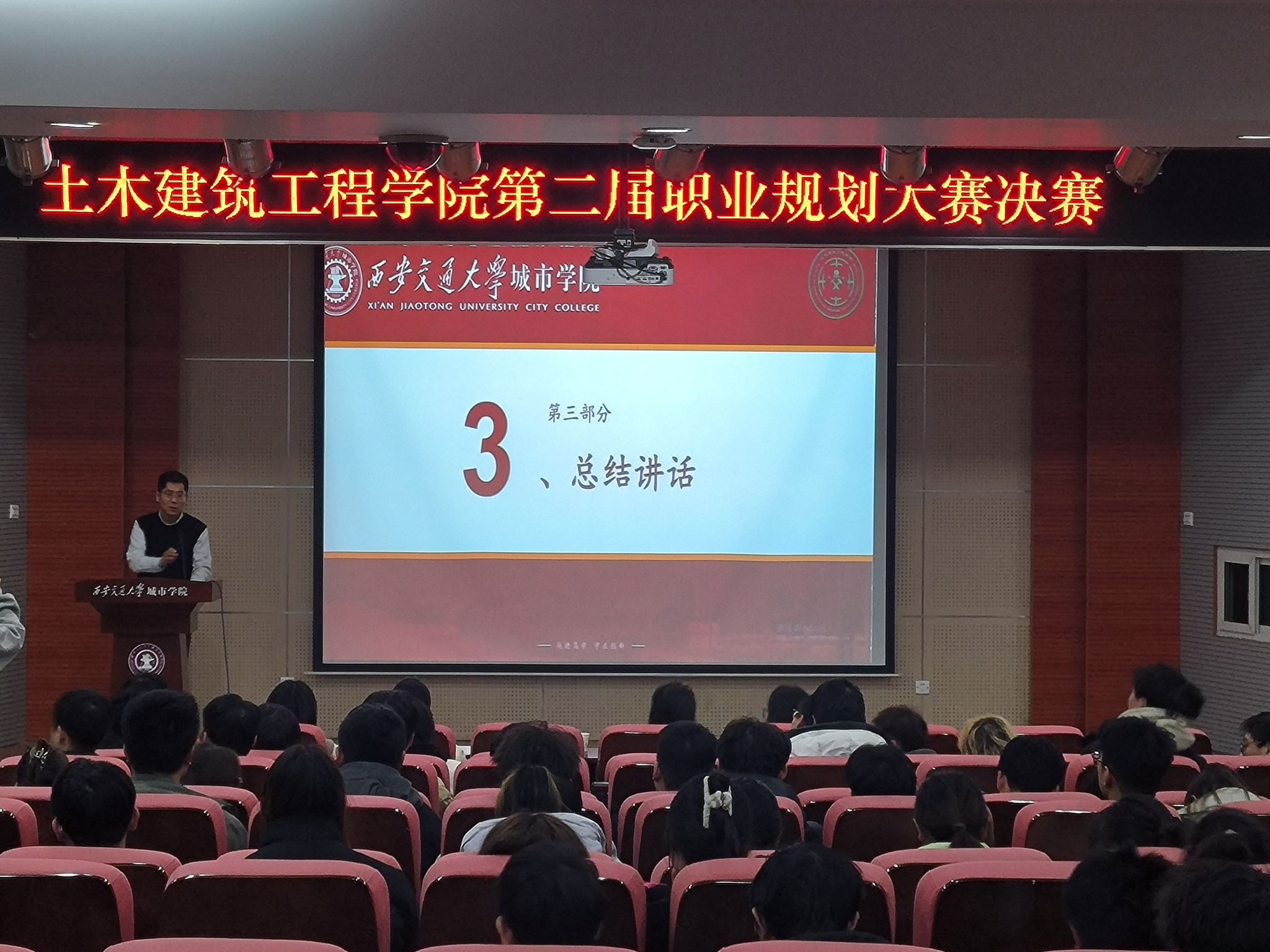 赛后由土木建筑工程学院学工负责人李辉老师对大赛进行总结讲话,他对选手提出了表扬和鼓励,希望每一位同学都能够为自己未来的学习和职业发展做好规划。