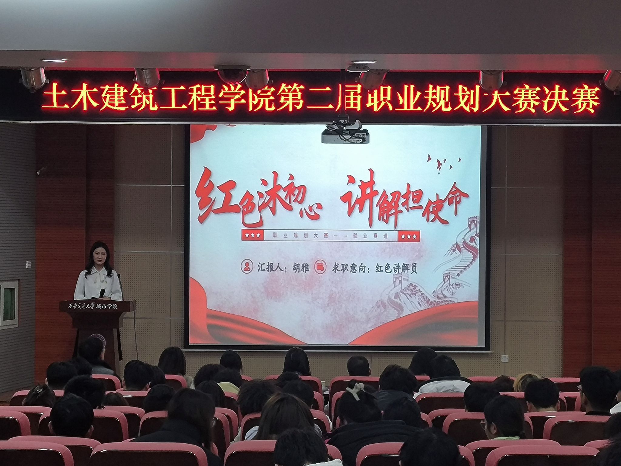 为引导学生树立正确的就业观和择业观,科学合理规划学业与职业发展,提升就业竞争力,土木建筑工程学院于12月6日16点40在F100报告厅举办了第二届职业规划大赛决赛,土木工程系主任代倩、班主任张瑜、戴世安、辅导员杨洋、康璐担任本次大赛评委。