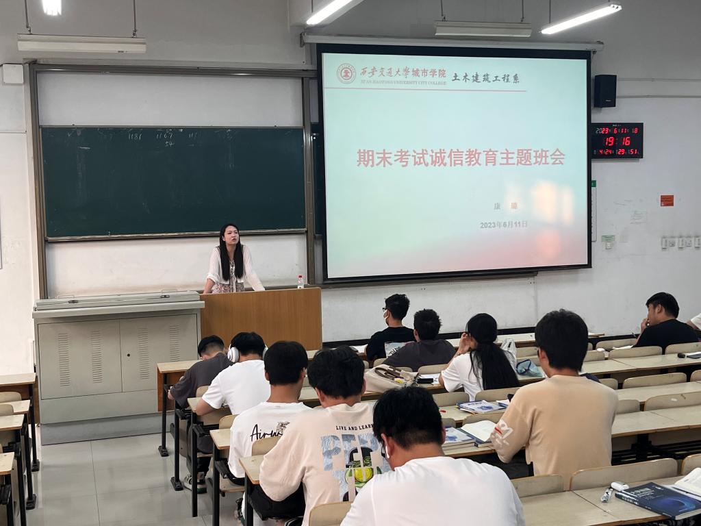 为加强考试管理、规范考场秩序、营造诚信应考氛围,土木建筑工程系于6月12日在F200、D207陆续开展了“遵守考试纪律、严肃考风考纪”期末考试诚信教育主题班会。